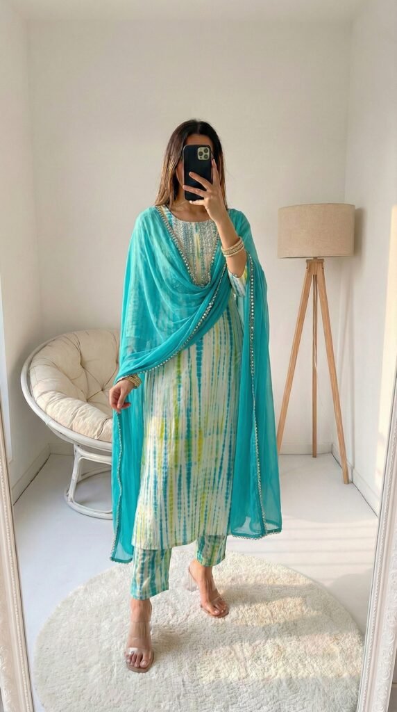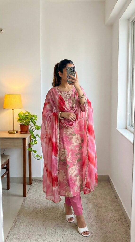 - Master one dupatta drape style. A dupatta worn as a shoulder stole reads instantly more polished than one wrapped loosely or left bundled. Practice two draping styles once — you’ll use them forever.