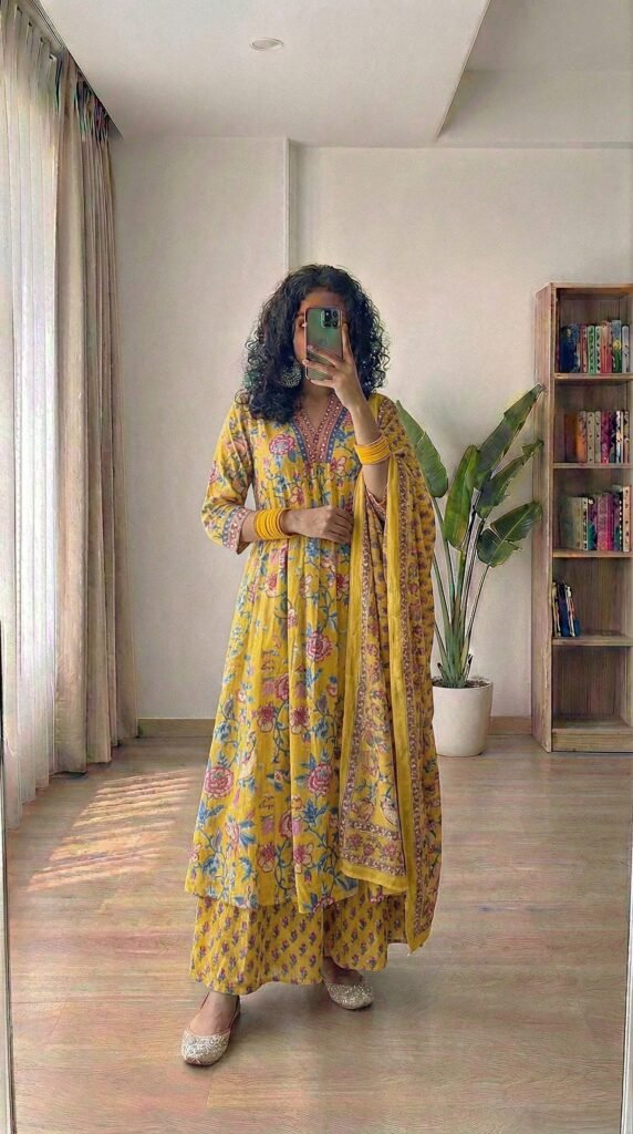 At around Rs 489–498 on Flipkart — rated 4.1 stars by over 28,000 buyers — the Oumad Floral Print Kurta, Palazzo & Dupatta Set is one of the most trusted affordable kurta palazzo sets on the Indian market right now. And what makes it exceptional isn’t just the price — it’s the thoughtfulness of the three-piece combination. The kurta, palazzo and dupatta are designed and dyed to complement each other, which means you don’t need to spend any time hunting for matching bottoms or coordinating dupattas. The set does the work; you just wear it. The palazzo silhouette has been having an extended fashion moment in India for good reason — it flows, it flatters, it gives every step a certain graceful drama. Whether you’re attending a seminar, heading to a cultural fest, sitting through back-to-back meetings, or catching up with friends over masala chai — this outfit holds up across all of it. For women who want to blend traditional Indian elegance with genuine everyday comfort, this three-piece set is, quite honestly, close to perfect for its price point.