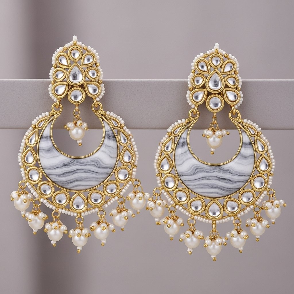 Affordable elegance! These bridal kundan chandbalis with marble print interiors look regal despite the low price.
