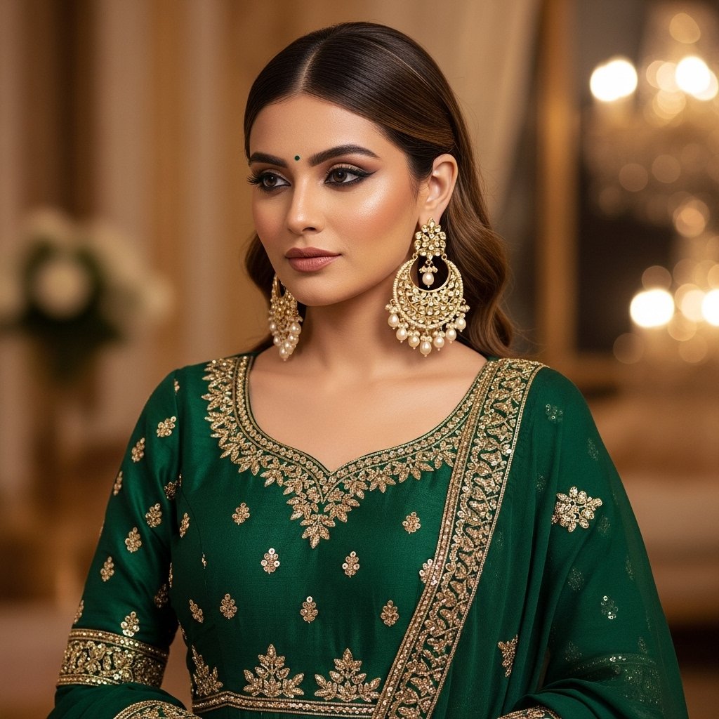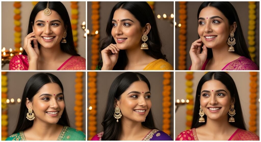 - For wedding looks, try kundan danglers or chandbalis with a sleek bun.