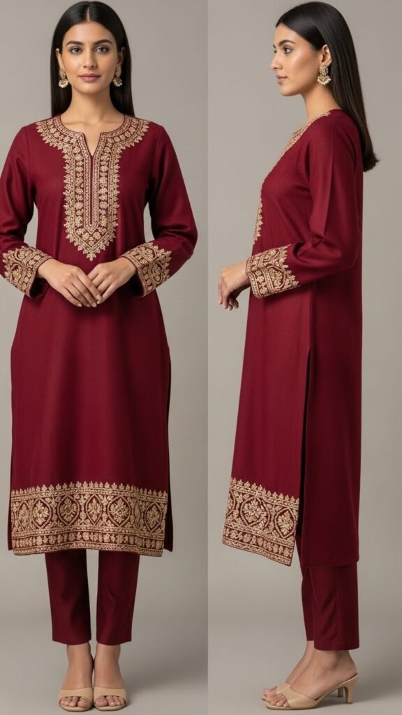 - 9. Wool kurti | Winter kurti for women | Woolen Kurti for women | winter kurti for women | embroidery kurti