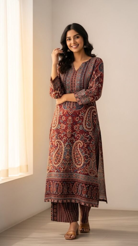 - Trendy Kashmiri-style print that looks stylish and ethnic.