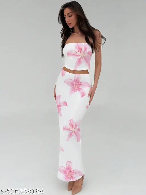 Priced at just ₹340, this breezy set is a steal for beach vacations. The tube top’s stretchable fabric and the skirt’s floor-length cut create a resort-ready look.